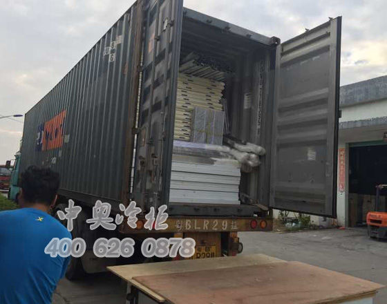 2015年10月13日,出口印尼冷柜裝柜現(xiàn)場(chǎng).此款冷柜為豪華款五門(mén)冷柜,尺寸3625*800*2100,玻璃門(mén)除霧回彈帶定位功能.出口冷柜,首選中奧冷柜.