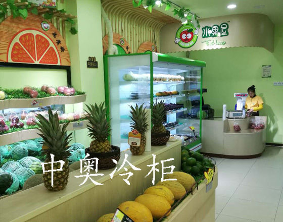 案例名稱:福田水果屋2米綠色風幕柜中奧水果保鮮柜